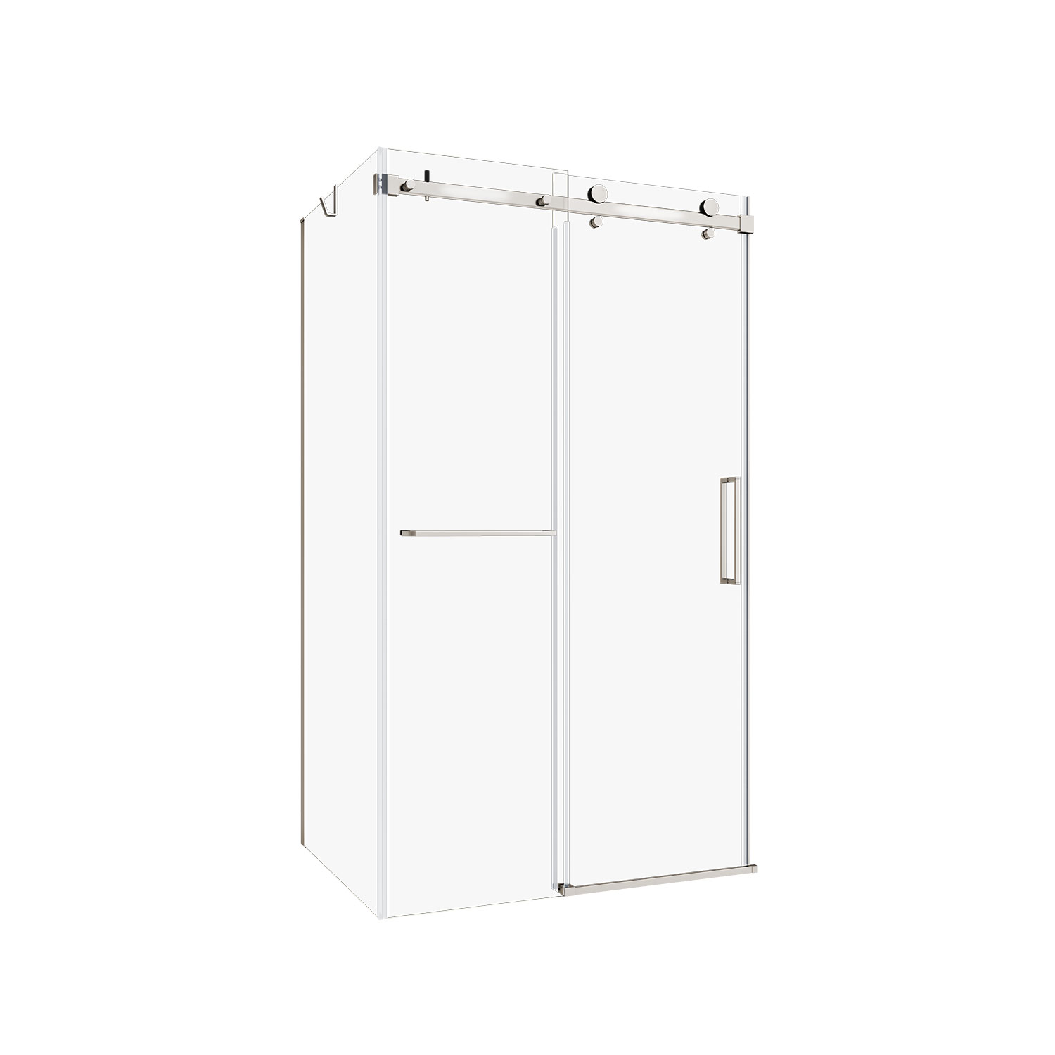 Zitta shower base not available in this dimension. Shower door Bellini 2.0 in a corner closing on wall, 72" x 42", towel bar and hook included, sliding door, chrome frame and clear glass, Zitta collection