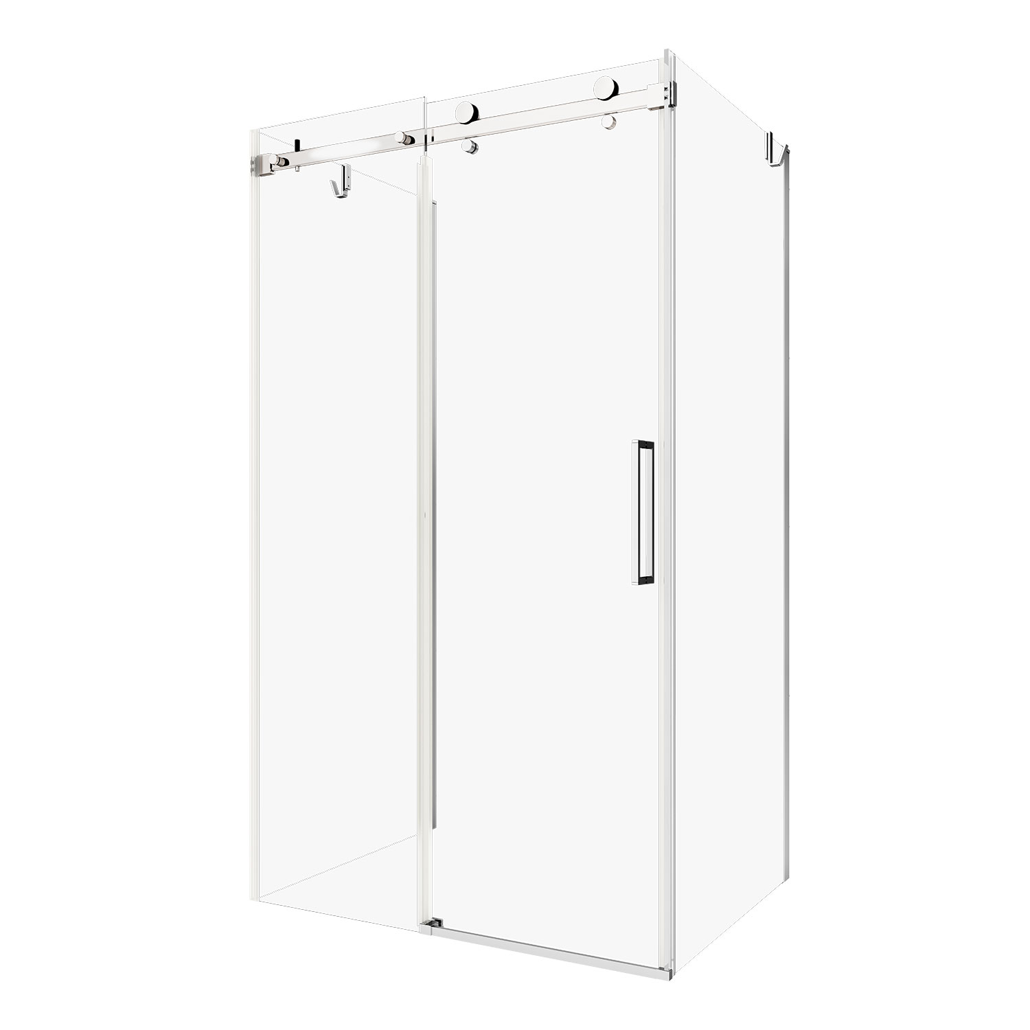 Porte de douche Bellini, installation sur mur, 60" x 42", barre à serviette non incluse, porte coulissante, cadre chrome et verre clair, collection Zitta