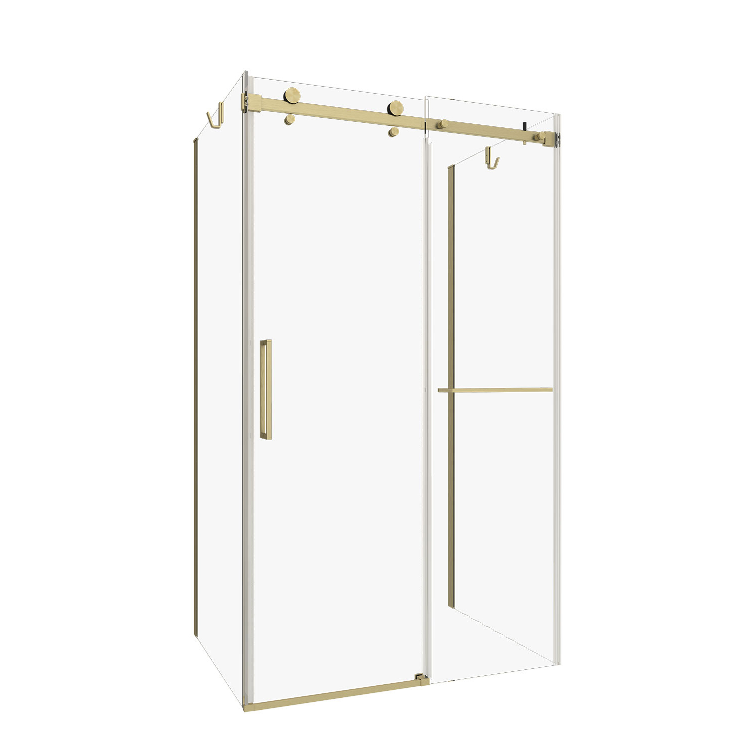 Porte de douche Bellini 2.0, installation sur mur, 72" x 36", barre à serviette et crochet inclus, porte coulissante, cadre or brossé et verre clair, collection Zitta