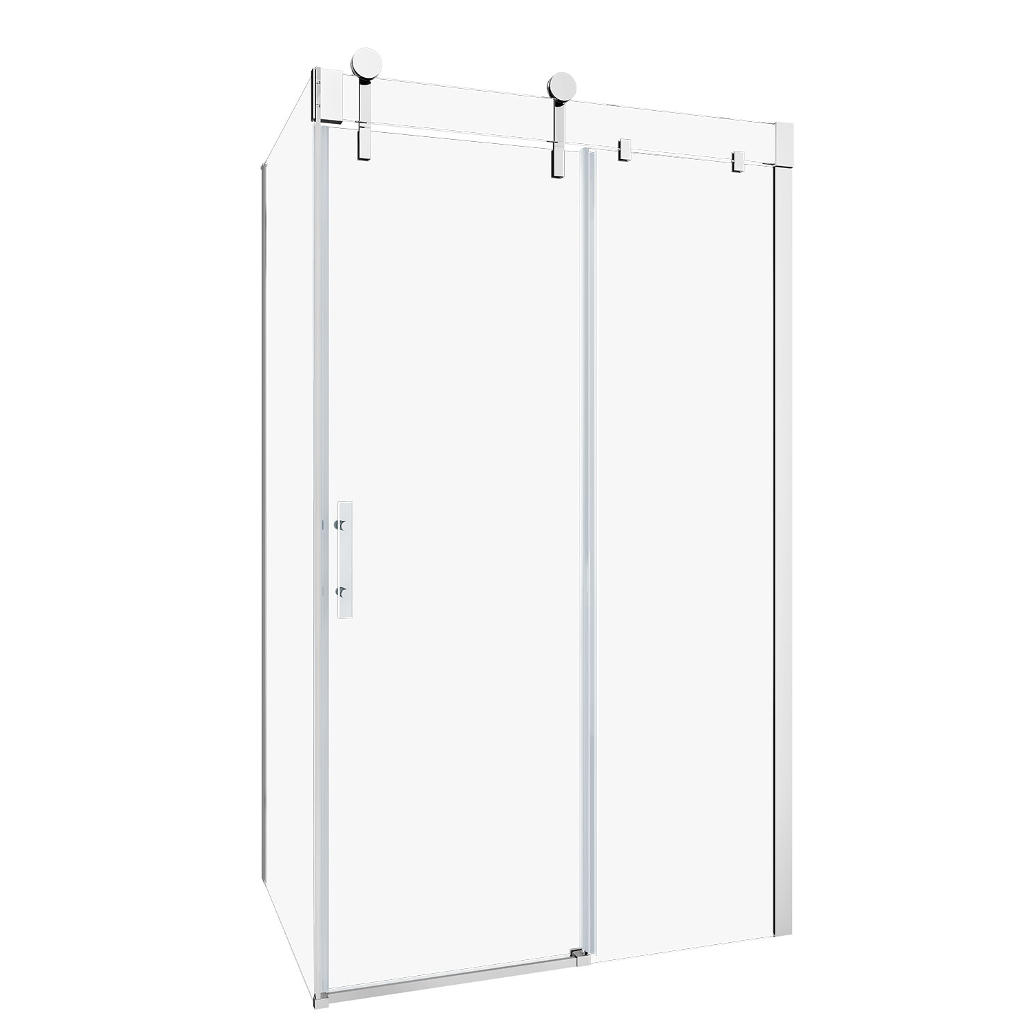 Porte de douche Infinite, en coin fermeture sur retour, mur à droite, porte à gauche, 60" x 36", Coulissante, cadre chrome et verre clair, collection Zitta
